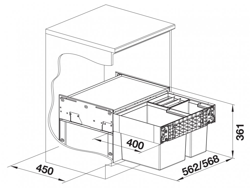 Systém je navíc vybaven skrytými madly, která jsou elegantně integrována do nádob koše pro jednoduchou manipulaci a vynášení odpadků. Rychlá a snadná montáž zaručuje jednoduchou instalaci, čímž se tento produkt stává ideálním řešením pro efektivní a stylové třídění odpadků.