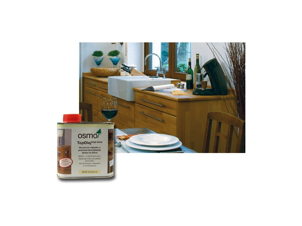 - Top olej zachová povrch dřeva přírodně matný a učiní ho odolný vůči skvrnám a chemikáliím používaným v domácnosti