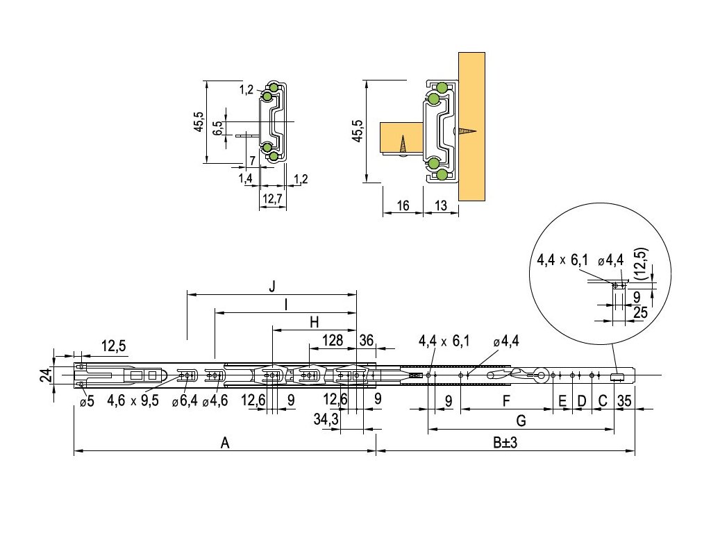 STRONG kuličkový plnovýsuv s podpěrou a dotlumením 45 kg