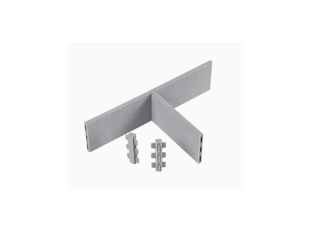 Díky spojce ve tvaru T a Vario profilu si snadno vyrobíte příborník, či různou dělící přihrádku na míru do šuplíku o jakémkoliv rozměru.