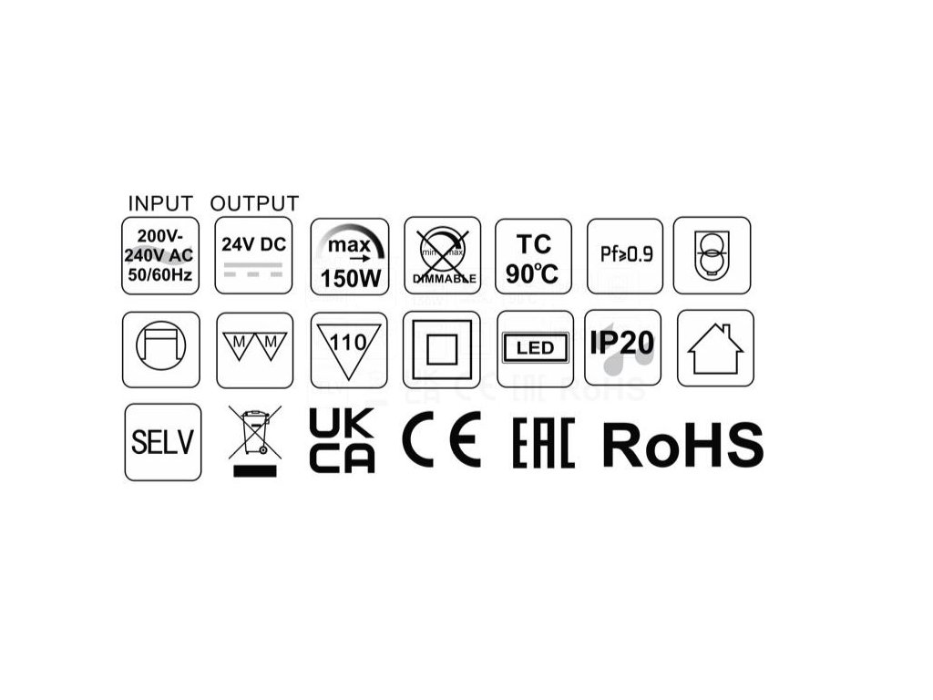 Je vhodný pro nápájení LED osvětlení s napětím 24V DC a celkovým výkonem do 150W.
