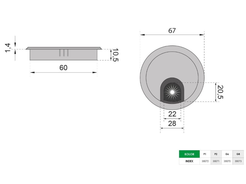 Průchodka kabelová kovová průměr 60 a 80 mm