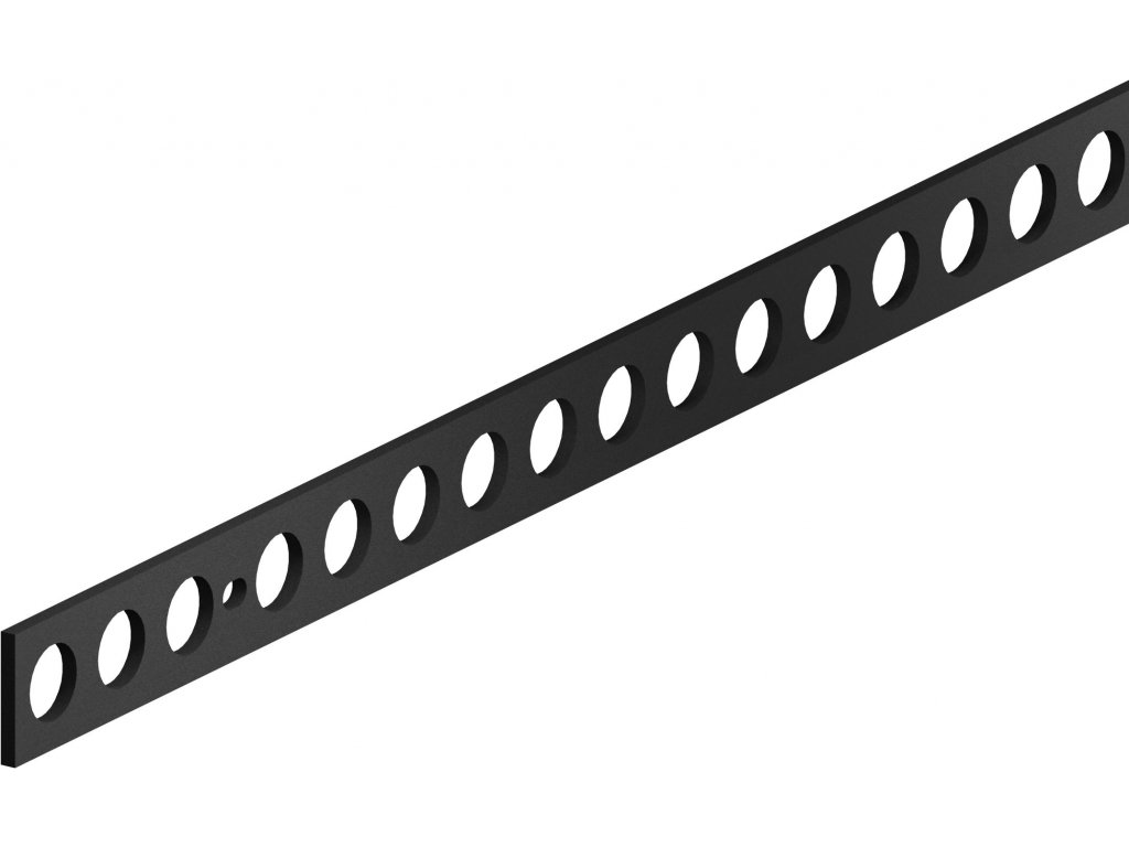 Kolejnice je vyrobena z oceli, která zajistí pevnost a díky své speciální povrchové úpravě v černé mat je odolná vůči mechanickému poškození.