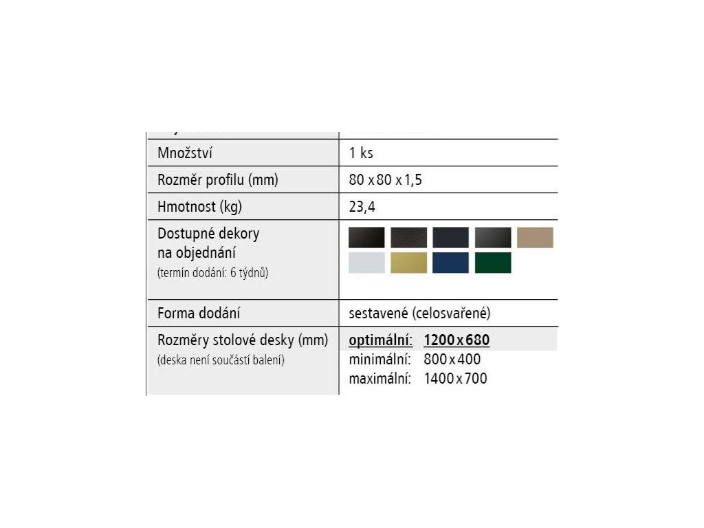 - Optimální rozměry stolové desky: 1200 x 680 x 36 mm
