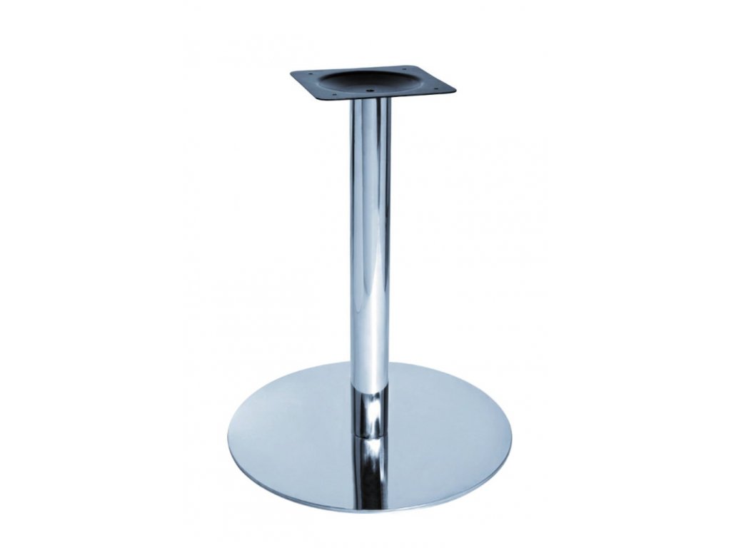 Stolová noha s povrchovou úpravou nerez broušená je vyrobena z trubky o průměru 76 mm a vrchní ocelové desky tloušťky 3 mm o rozměrech 350 x 350 mm.