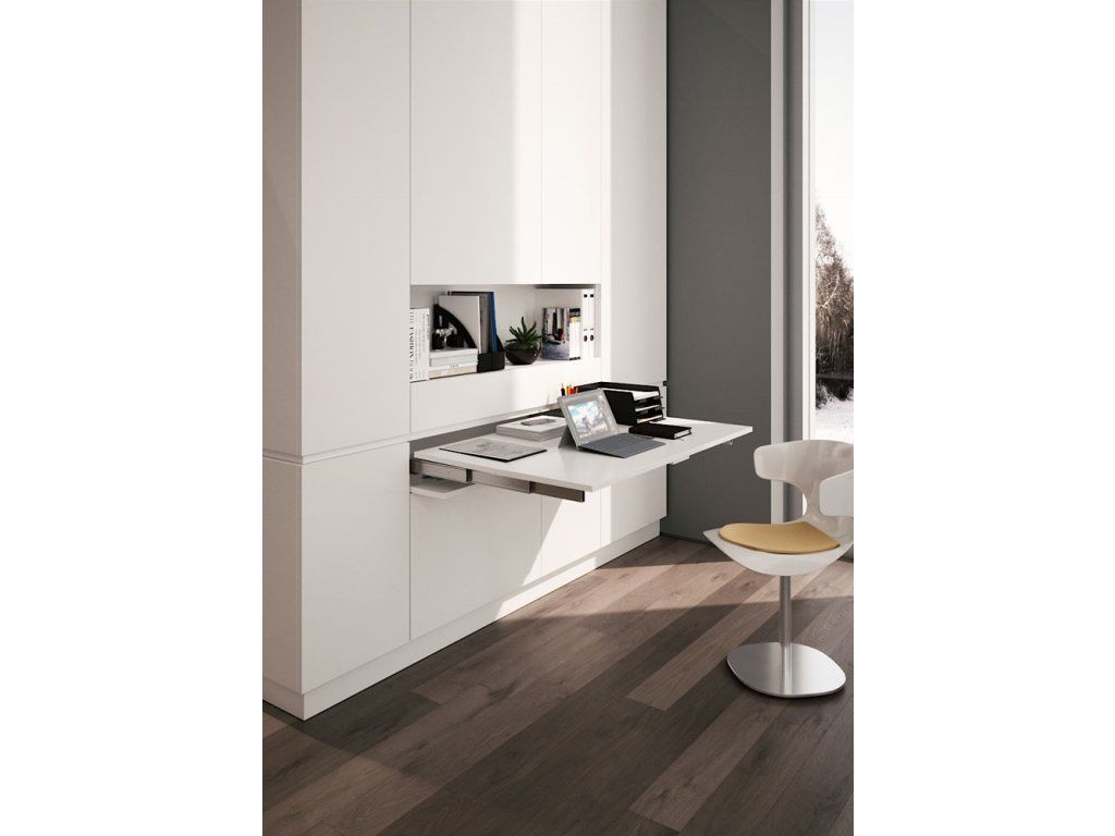 Po vysunutí získáte plnohodnotnou pracovní plochu o délce až 705 mm navíc. Stolová deska je diskrétně skrytá za čílkem zásuvky, takže při složeném stavu neruší vzhled nábytku.