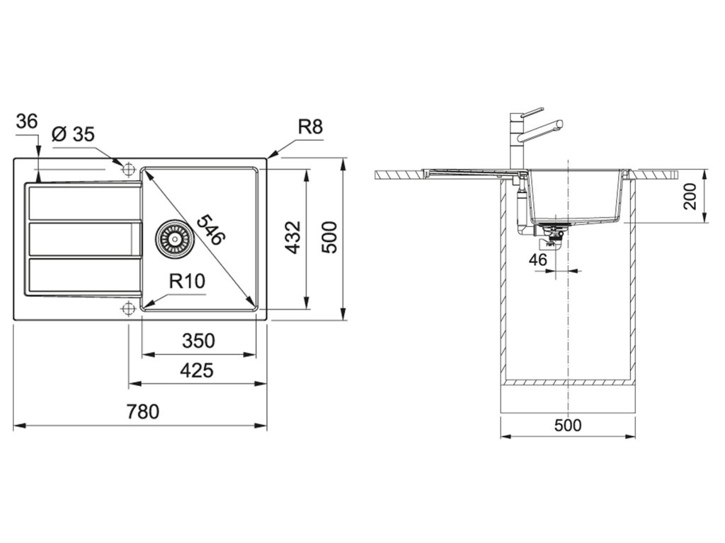 Rozměry dřezu: 780 x 500 mm