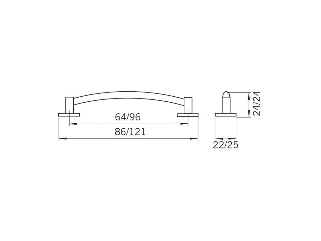 - Rozteč: 64 mm, 96 mm