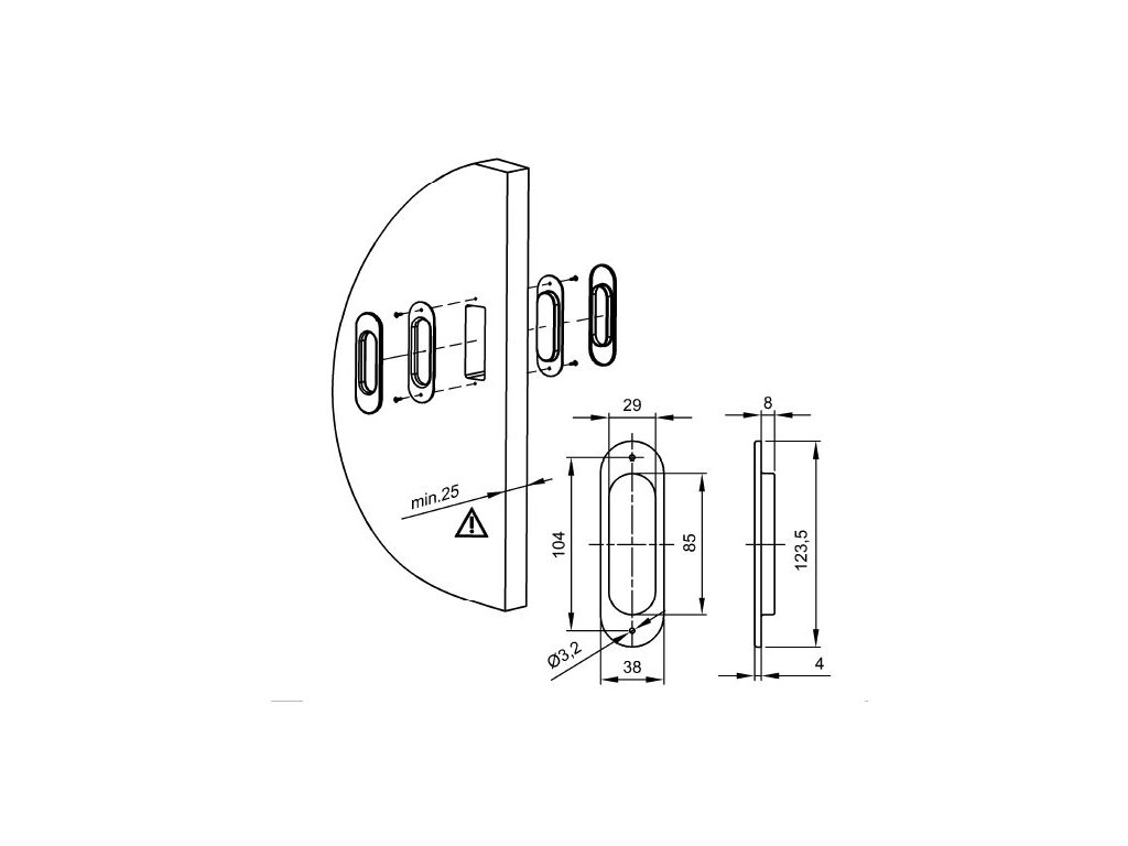 Úchytka mušle oválná pro posuvné dveře 125 x 33 mm - 2 ks