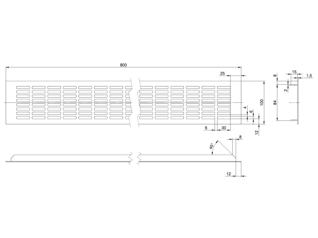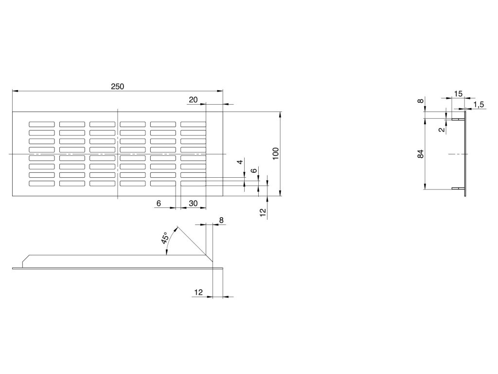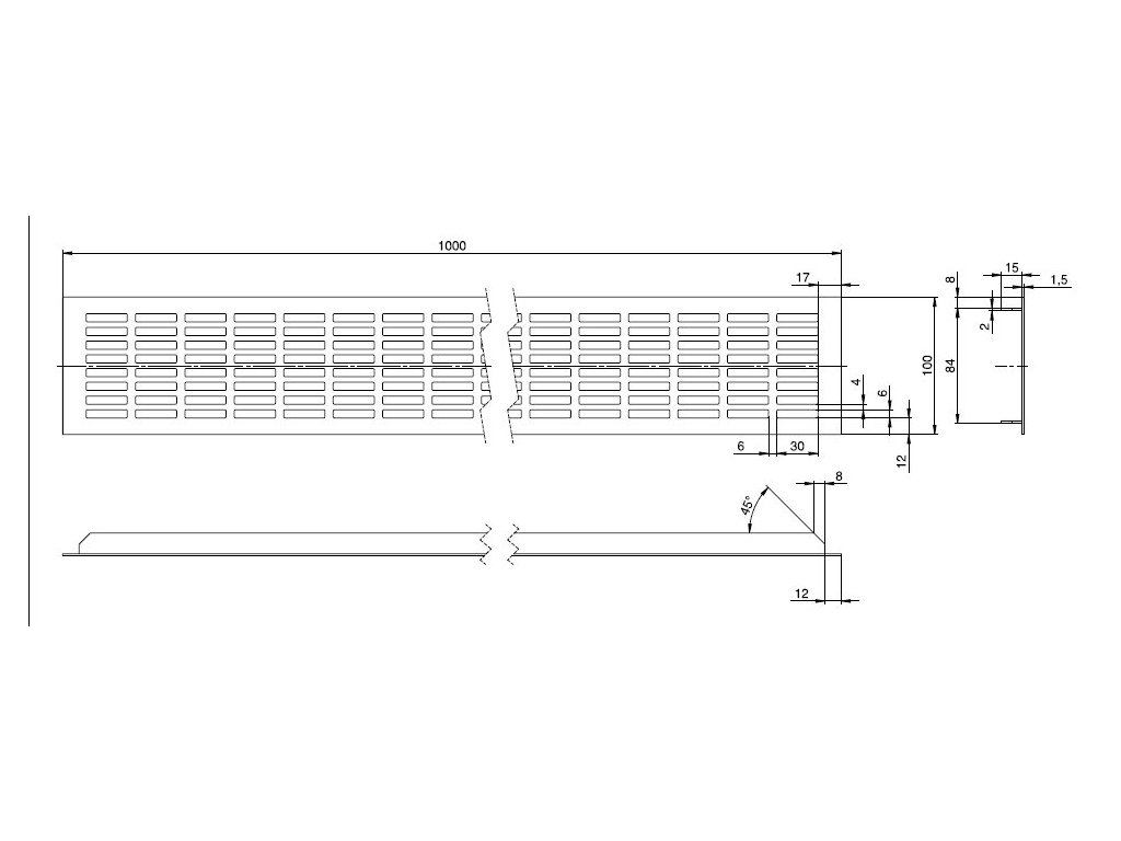 Hliníkové větrací mřížky k použití v interiérech, například do dveří, nábytku, parapetů nebo do obkladů nad radiátory (topení).