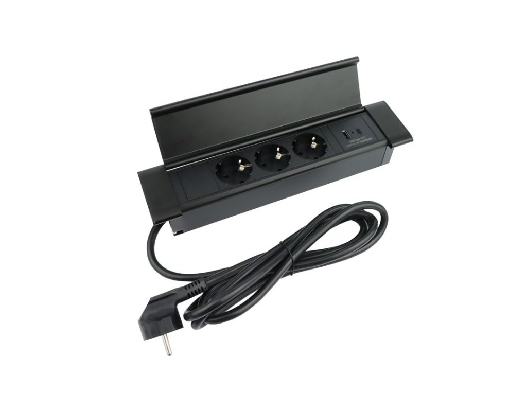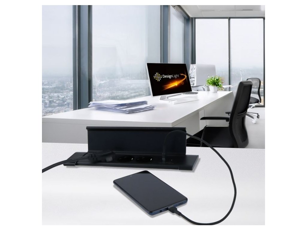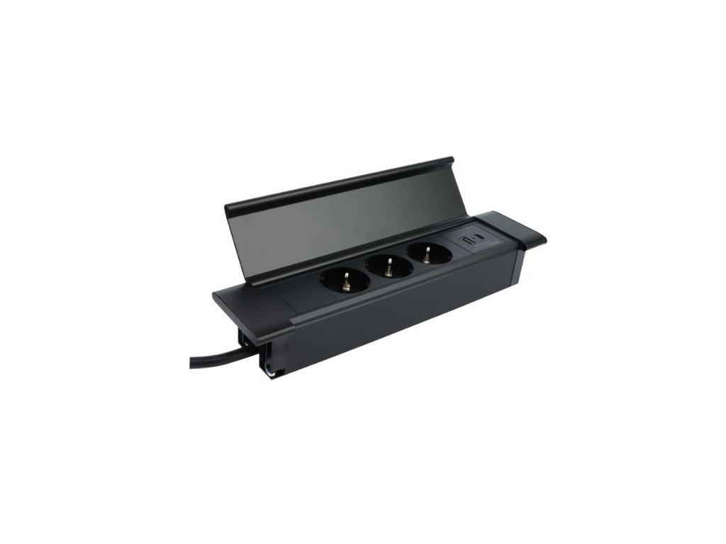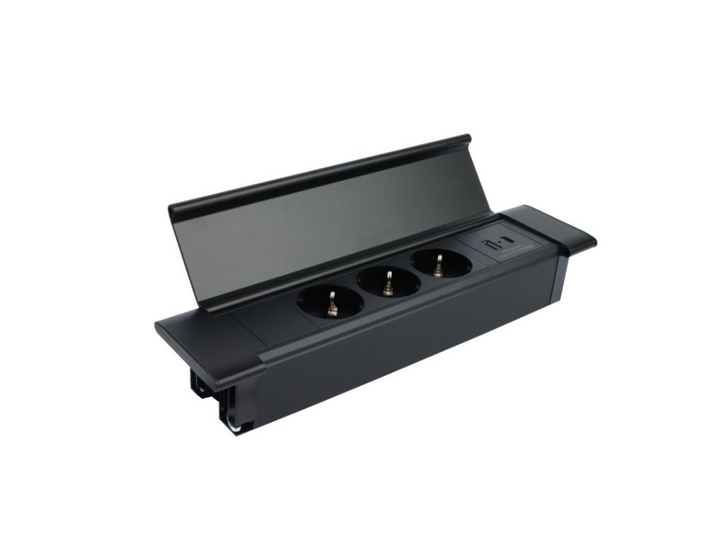 Design Light otevírací zásuvka FLATBOX 3x 230V a 2x USB nabíječka černá