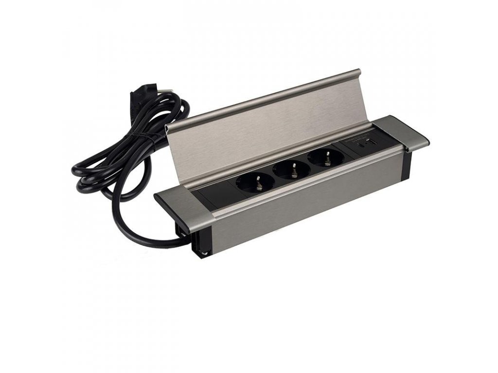 Design Light otevírací zásuvka FLATBOX 3x 230V a 2x USB nabíječka nerez broušená