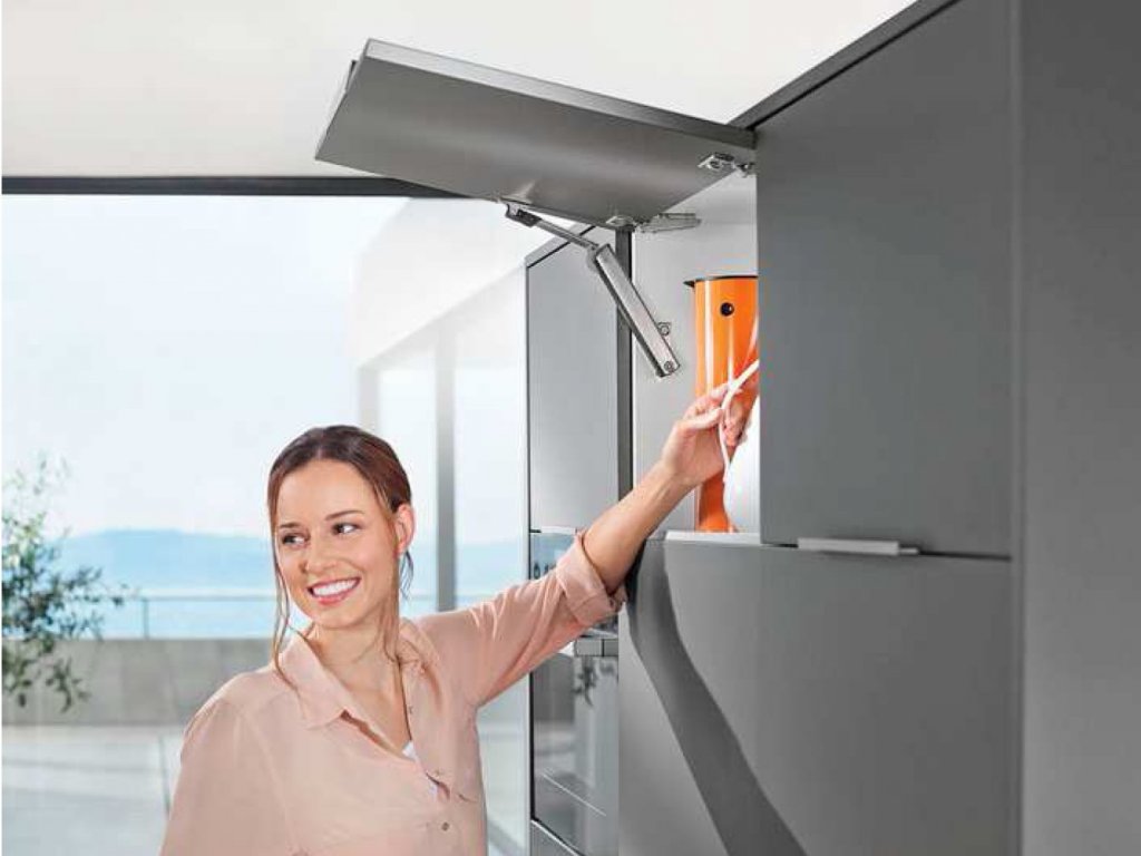 Zvedací mechanismus AVENTOS HK-XS TIP ON od renomovaného výrobce kování BLUM nabízí široké možnosti využití díky svému šikovnému úzkému designu. Lze ho snadno použít i pro korpusy s menší hloubkou. Symetrický zdvihač umožňuje instalaci na jednu nebo obě strany korpusu, což umožňuje manipulaci s většími a těžšími dveřmi.