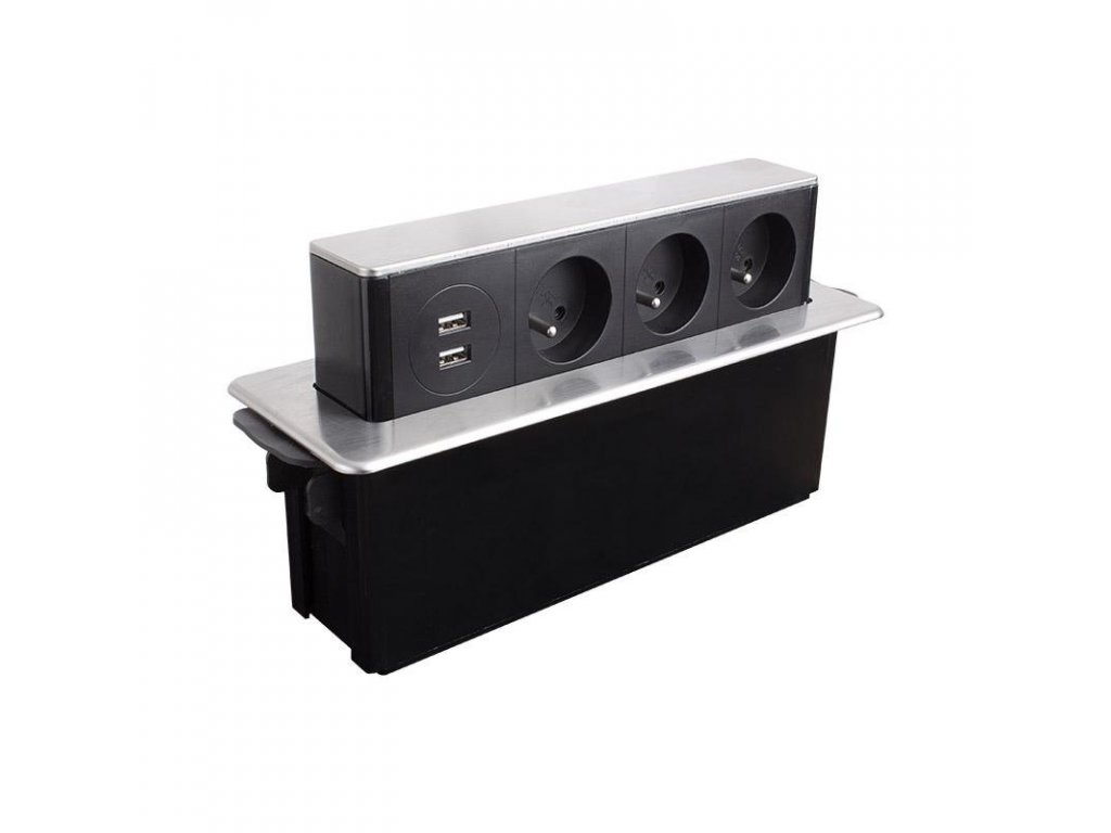 Design Light HOPBOX výsuvná zásuvka 3 x 230V a 2 x USB nerez broušená + kabel 2 m