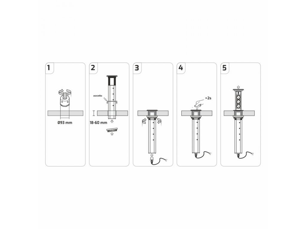 Lift Box obsahuje 3 zásuvky 230V AC max 16A a 2 USB zásuvky max. 5V DC/2,1A s vestavěnou nabíječkou. Zásuvka je v povrchové úpravě černá.