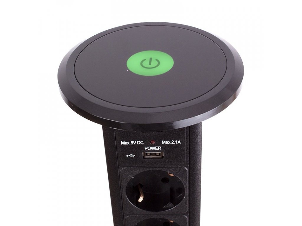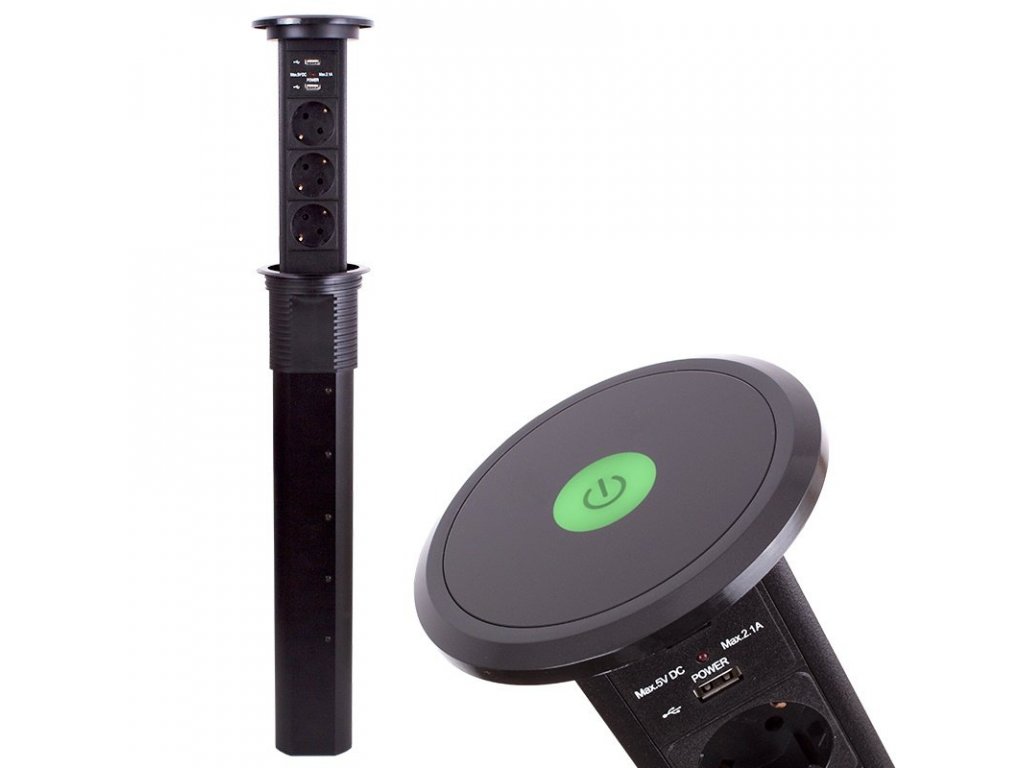 Design Light výsuvný automatický zásuvkový sloupek LIFT BOX 3x230V + 2xUSB Barva černá