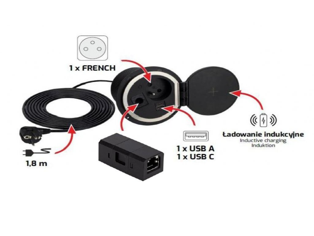 | Obsahuje: | 1x230V, USB-A, USB-C, RJ 45 |