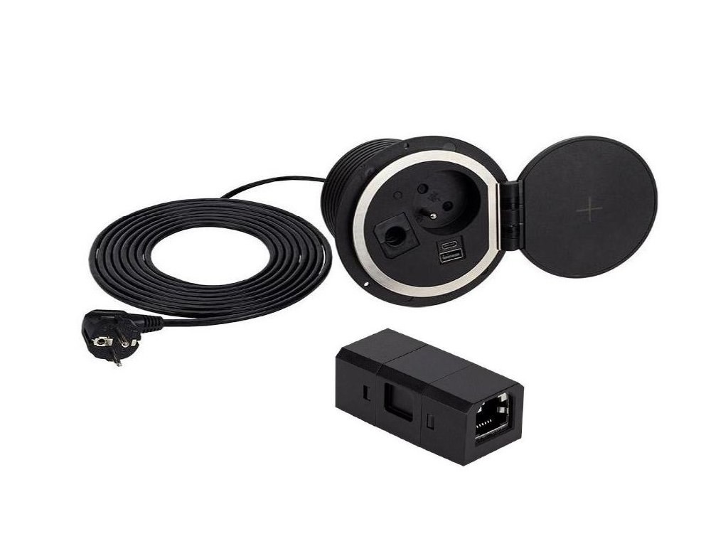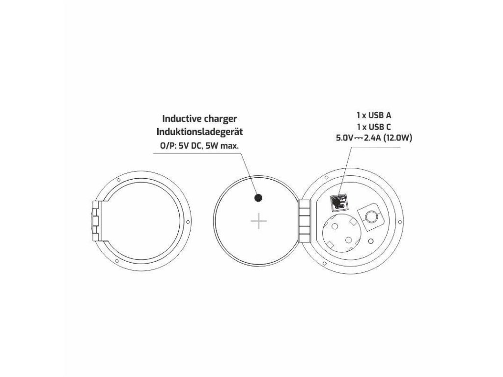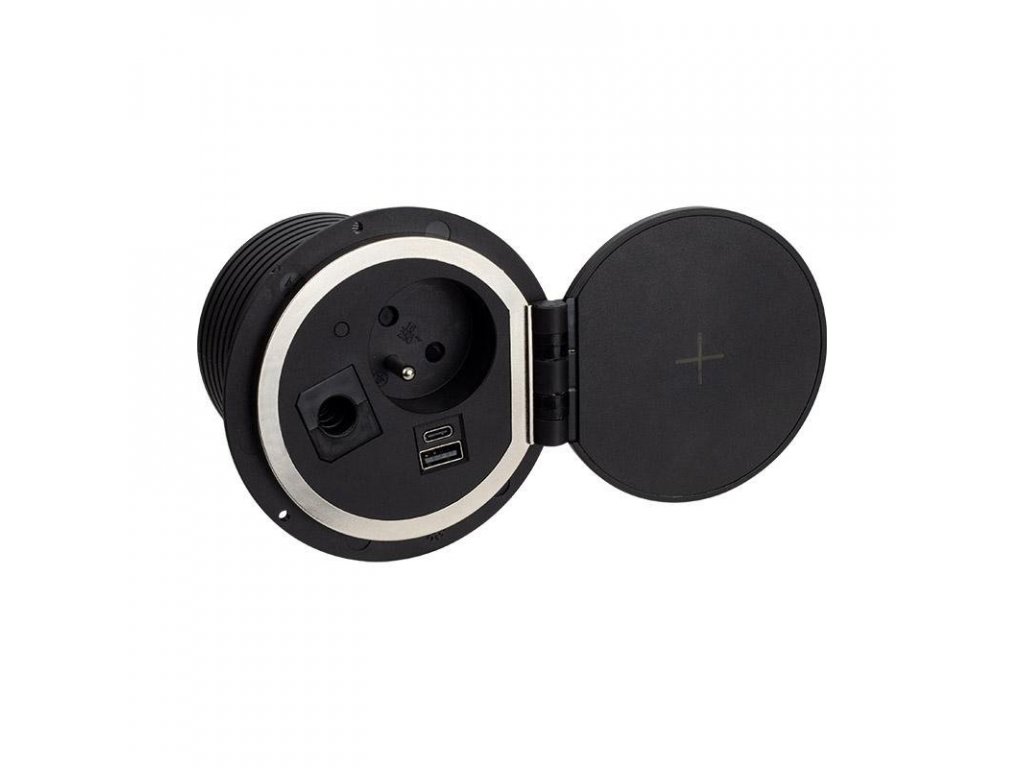 SAMBO BOX je moderní zápustná zásuvka pro nábytek do pracovní desky. SAMBO BOX má otevíratelný kryt s vestavěnou indukční nabíječkou na vnitřní straně.