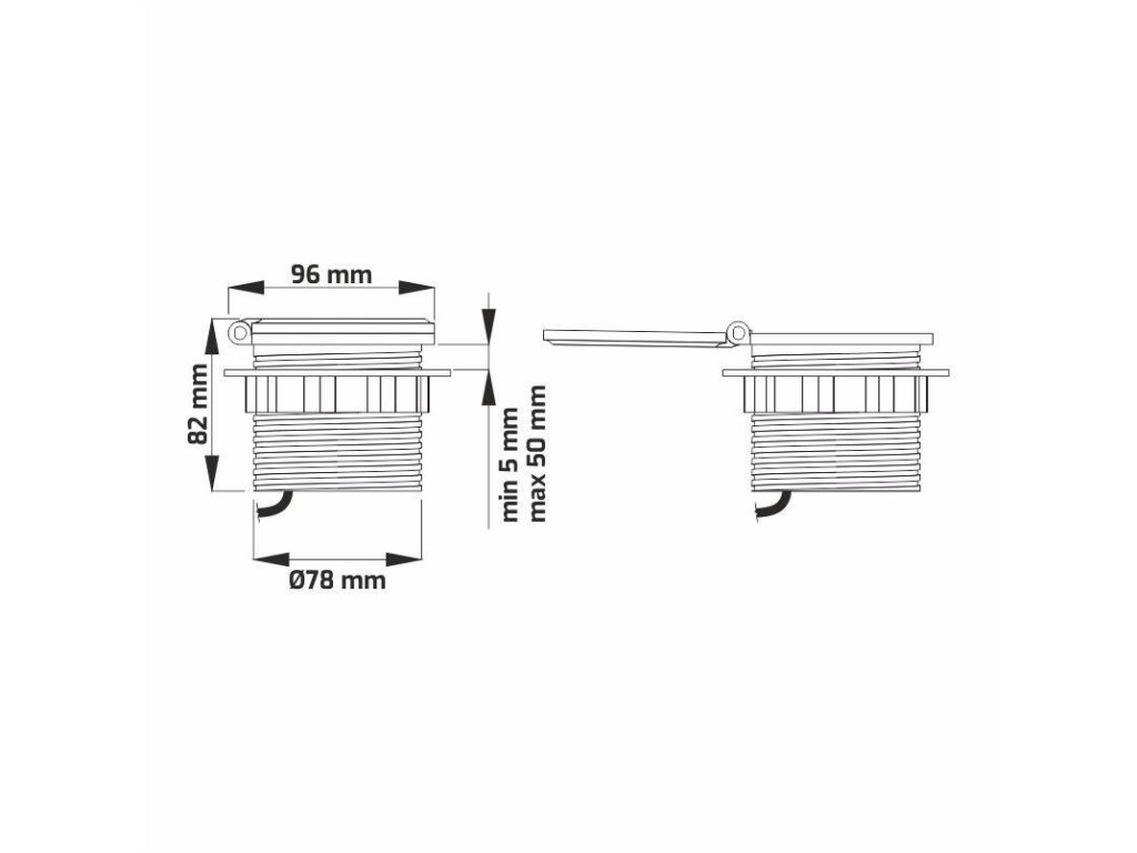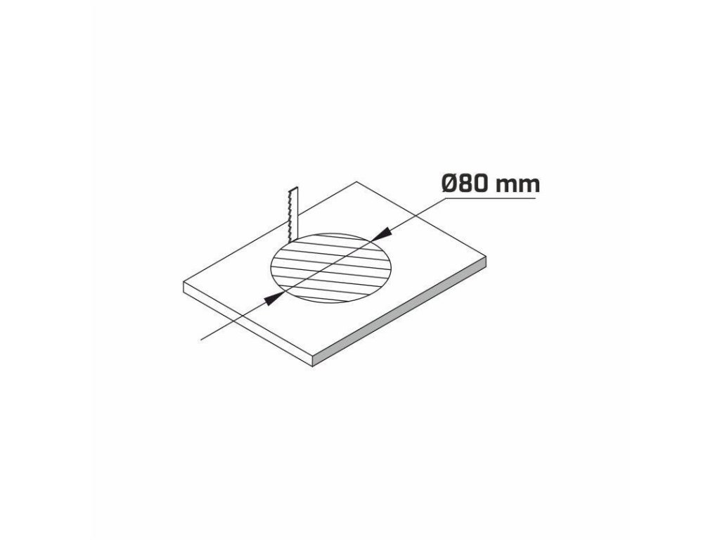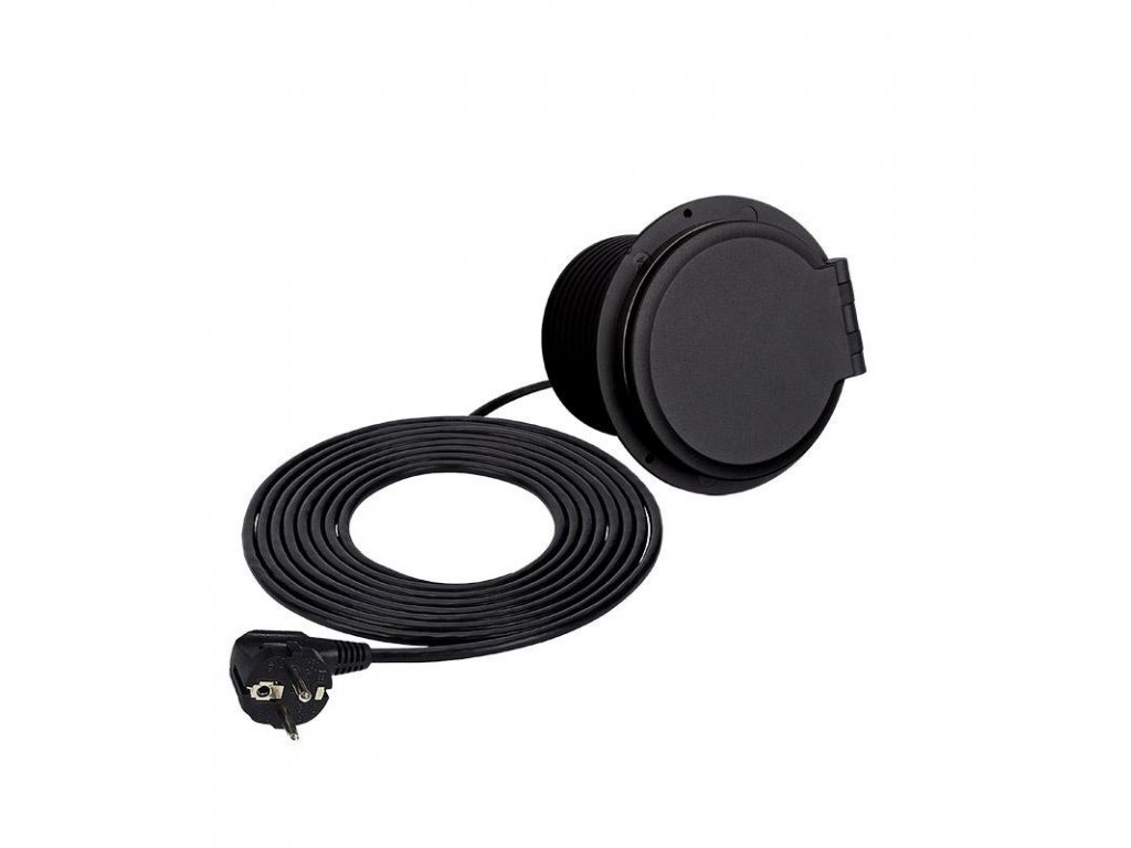 Zásuvka se vkládá do otvoru o průměru 80 mm, umístěním produktu a utažením přítlačného kroužku pod desku stolu. Zásuvka je v povrchové úpravě černá mat.