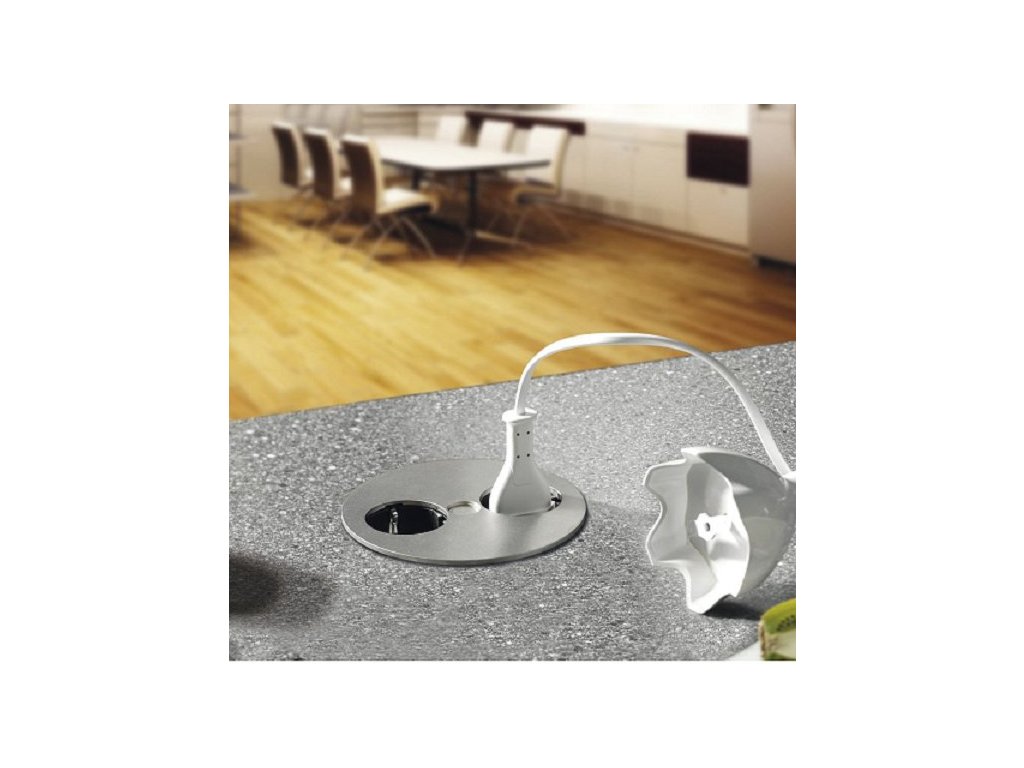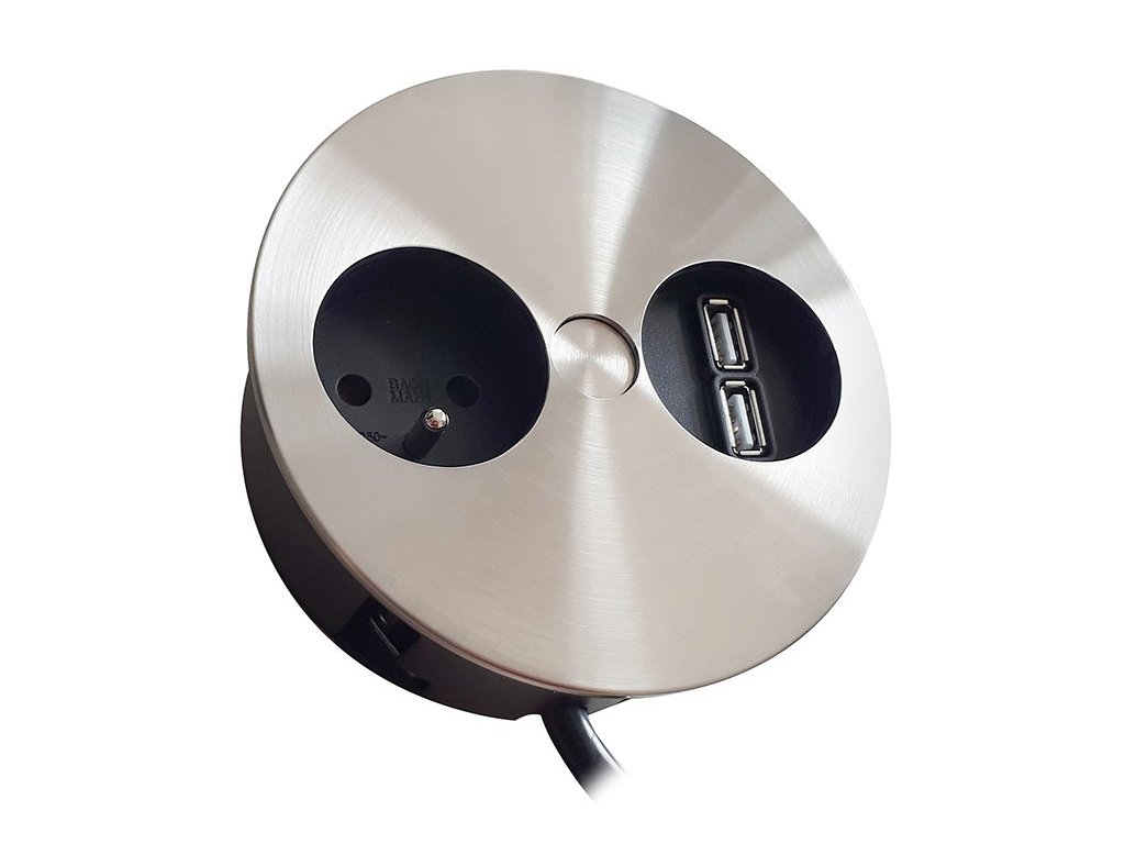 Elektro zásuvka Bachmann Twist nerez 931.032 pochází z německa a jedná se o zápustný zásuvkový modul pro kancelář, kuchyň nebo obývací pokoj. Díky perfektnímu provedení je zásuvka dobrou volbou při instalaci do stolů. Elektřina je vyvedena tak, aby hloubka instalace byla pouze 40 mm. Vrchní část zápustné zásuvky je vyrobena z nerezové oceli. Po stlačení středové části dojde k uvolnění otočného kruhu a odkrytí jedné zásuvky 230V a 2 USB portů. Tato zásuvka díky svému designu vyhrála i mnoho designových cen. Například Red Dot Design nebo German Design Award.