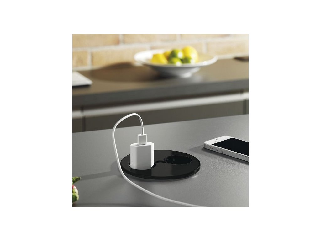 Elektro zásuvka Bachmann Twist černá mat 931.152 pochází z německa a jedná se o zápustný zásuvkový modul pro kancelář, kuchyň nebo obývací pokoj. Díky perfektnímu provedení je zásuvka dobrou volbou při instalaci do stolů. Elektřina je vyvedena tak, aby hloubka instalace byla pouze 40 mm. Vrchní část zápustné zásuvky je vyrobena z nerezové oceli. Po stlačení středové části dojde k uvolnění otočného kruhu a odkrytí dvou zásuvek 230V. Tato zásuvka díky svému designu vyhrála i mnoho designových cen. Například Red Dot Design nebo German Design Award.