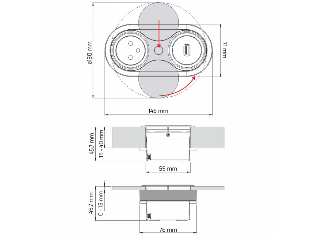 Hloubka zásuvky: 46 mm