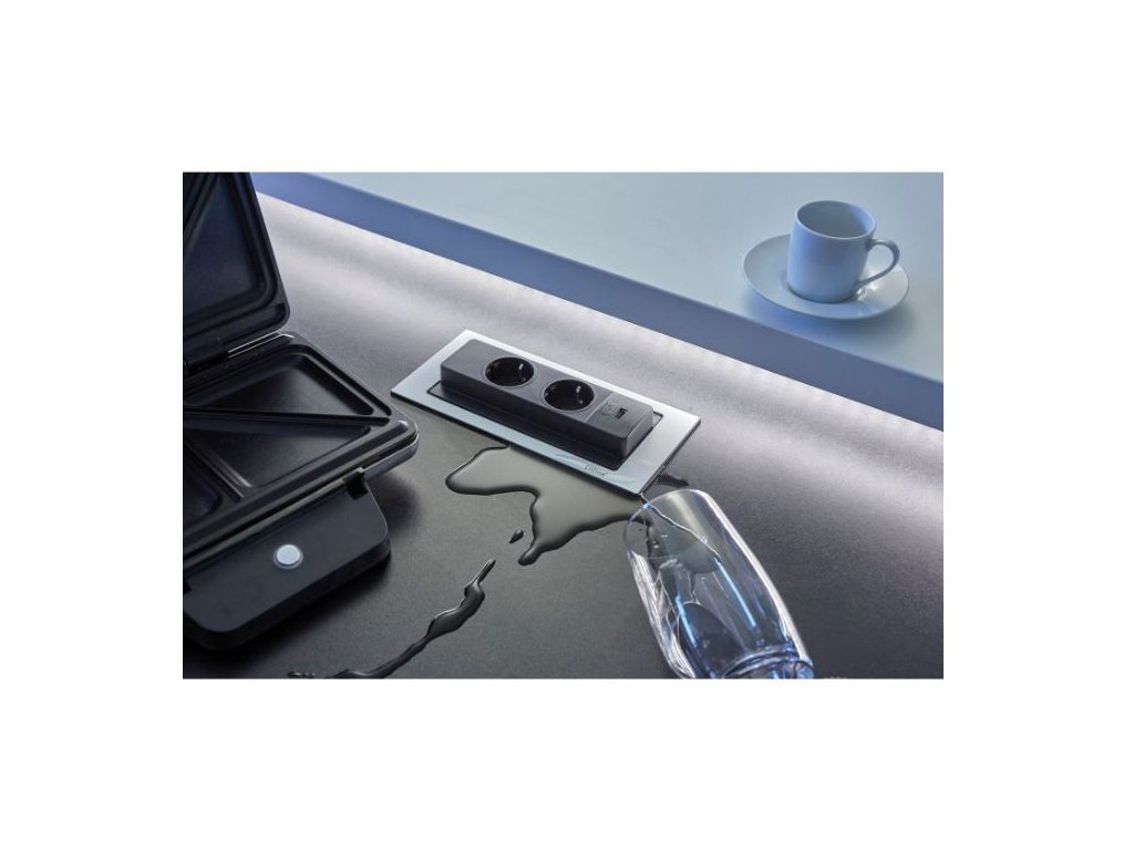 EVOline BackFlip zásuvka otočná 2x230V,1x USB C nerez kartáčovaný