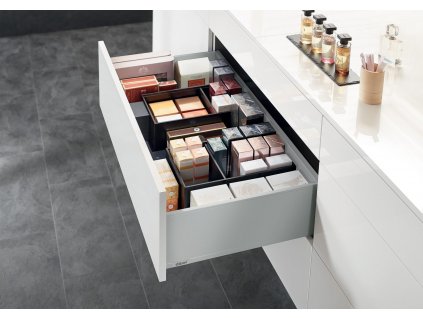Doporučujeme použít protiskluzovou podložku do zásuvek Antaro od firmy BLUM . Po vložení do zásuvky podložka přilne ke dnu zásuvky a tím zamezuje pohybu předmětů v šupliku a chrání dno zásuvky.