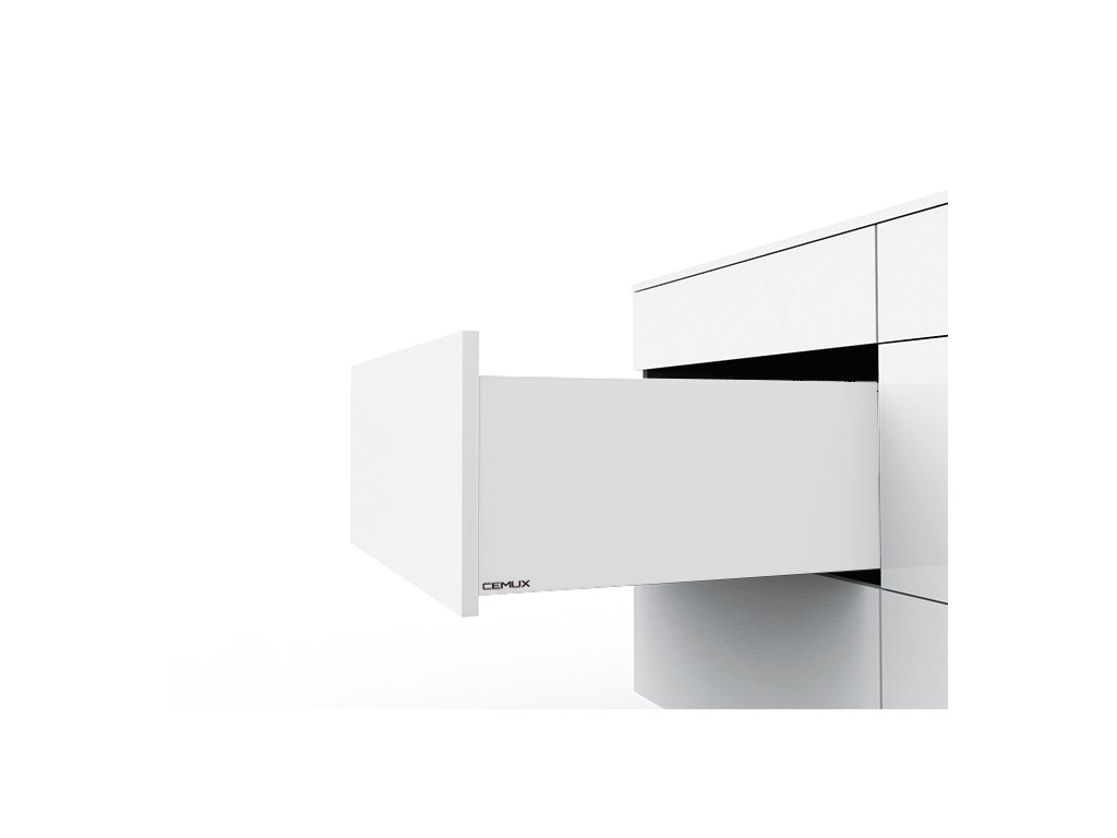 Zásuvka H Box SLIM s ultratenkou bočnicí a výsuvem TIP-ON pro bezúchytkové otvírání.