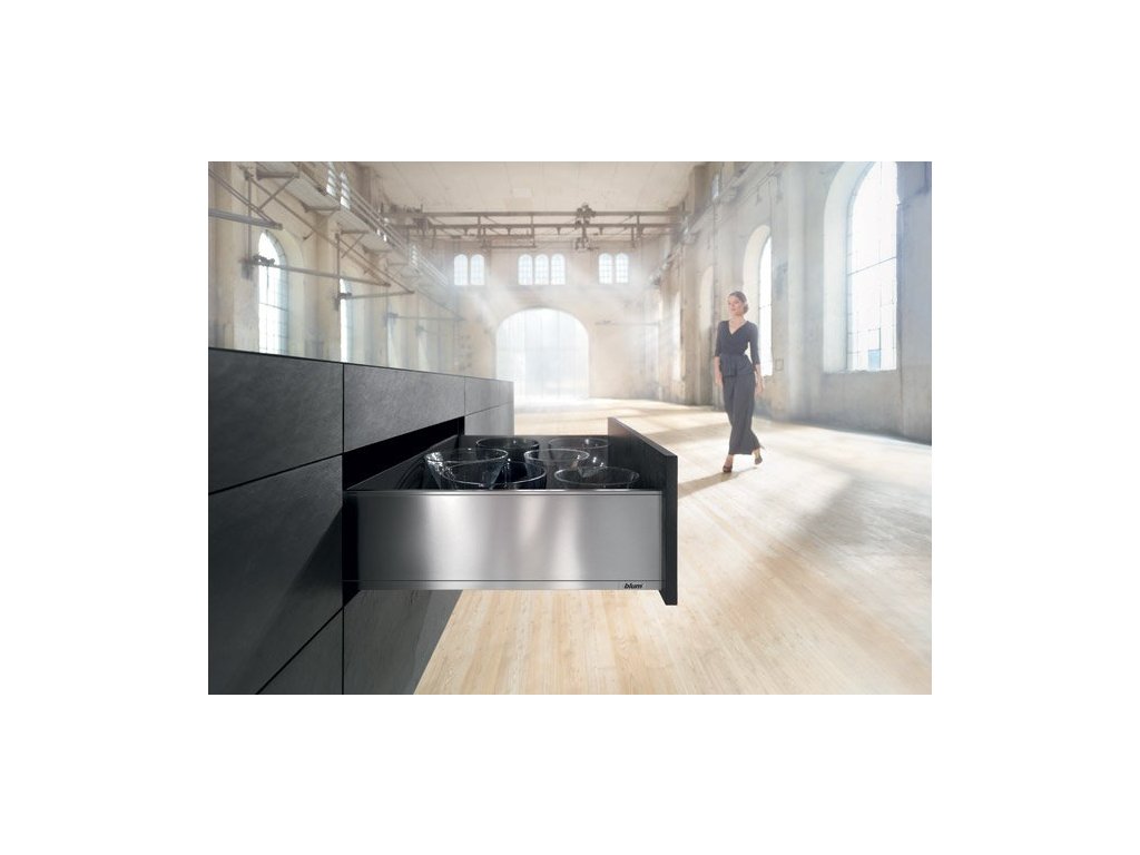 Sadu kování pro zásuvku s úzkou bočnicí 12,8 mm od firmy BLUM Legrabox K využijete při výrobě šuplíků v kuchyni, v koupelnách a obývacích prostorách.