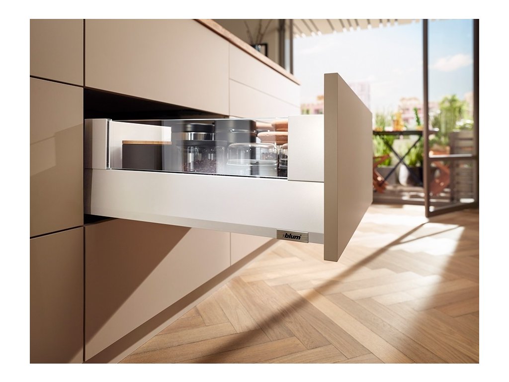Sada MERIVOBOX E Boxcover, zásuvku s bočnicí včetně bočního čirého skla využijete nejenom v kuchyni, ale i v šatních skříních.