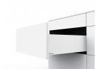 Zásuvky H Box Slim s úzkou kovovou bočnicí o síle 12,8 mm přinášejí elegantní design spolu s praktickými funkcemi. Jsou dostupné v tmavě šedé barvě antracit RAL 7012 a bílé RAL 9003. Samozřejmě u nich nechybí: