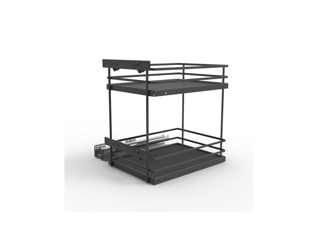 Dvojkoš Cemux Style 40-3D je ideálním řešením pro korpusy o šířce 400 mm. Tento dvoupatrový koš je vybaven plným dnem s protiskluznou podložkou Anti-Slip v antracitovém odstínu, což zajišťuje bezpečné a stabilní uložení vašich kuchyňských potřeb.